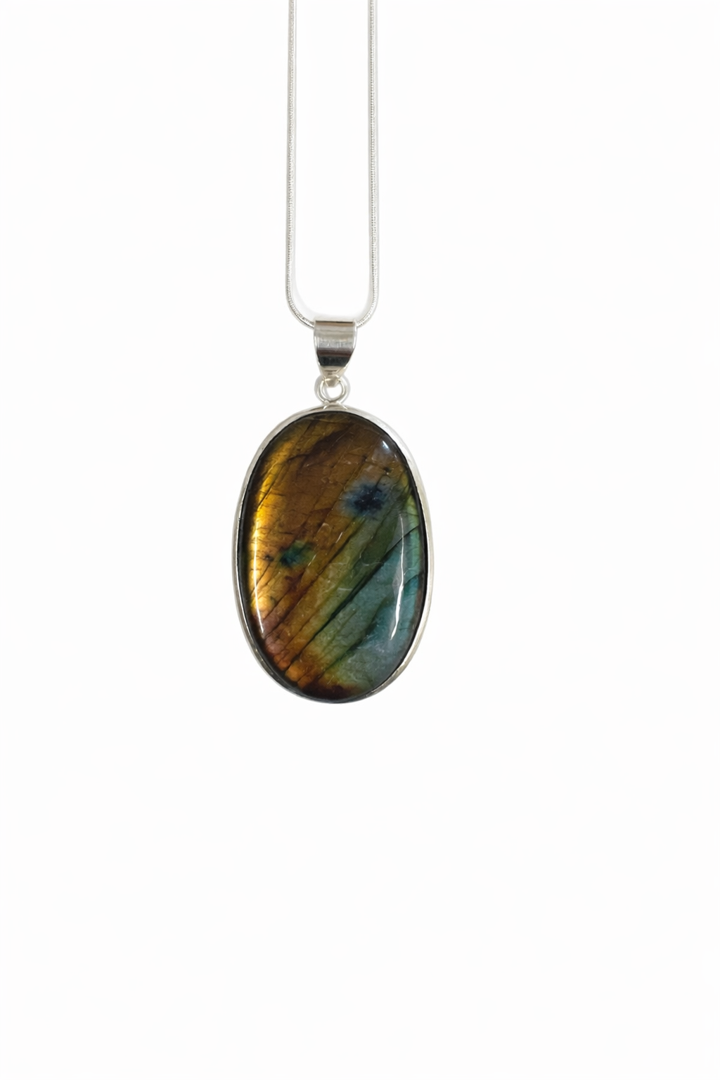 O pendente tem 3,20cm de comprimento. O fio de prata não está incluído, mas está à venda aqui no site.