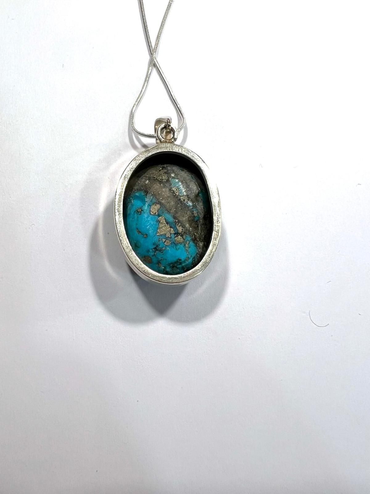 O pendente tem 3,50cm de comprimento. O fio de prata não está incluído, mas está à venda aqui no site.