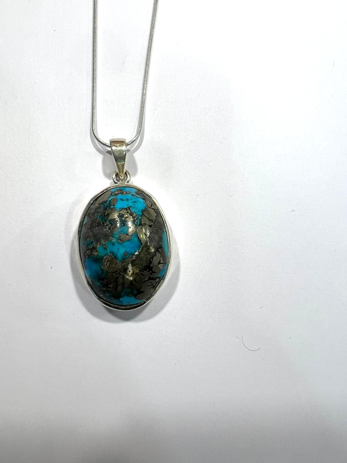 O pendente tem 3,20cm de comprimento. O fio de prata não está incluído, mas está à venda aqui no site.